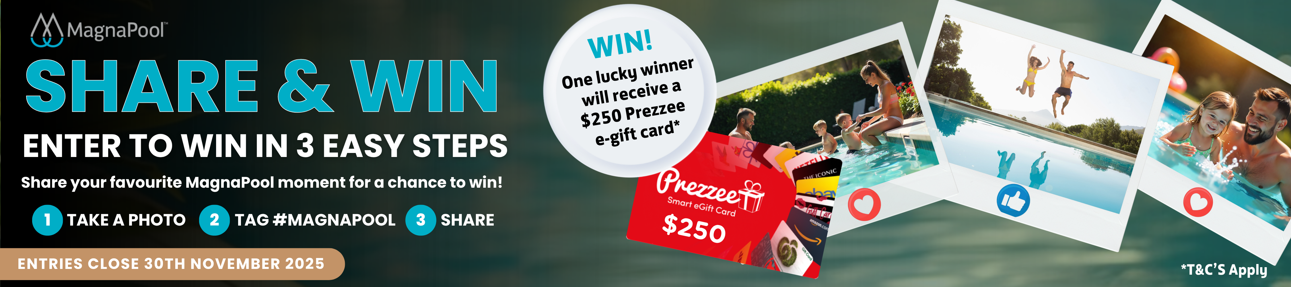 This Spring we are keen to hear about all of the amazing Magnapool memories you and your family have made in your pool. One lucky winner will score an amazing Prezzee e-gift card valued at $250!
